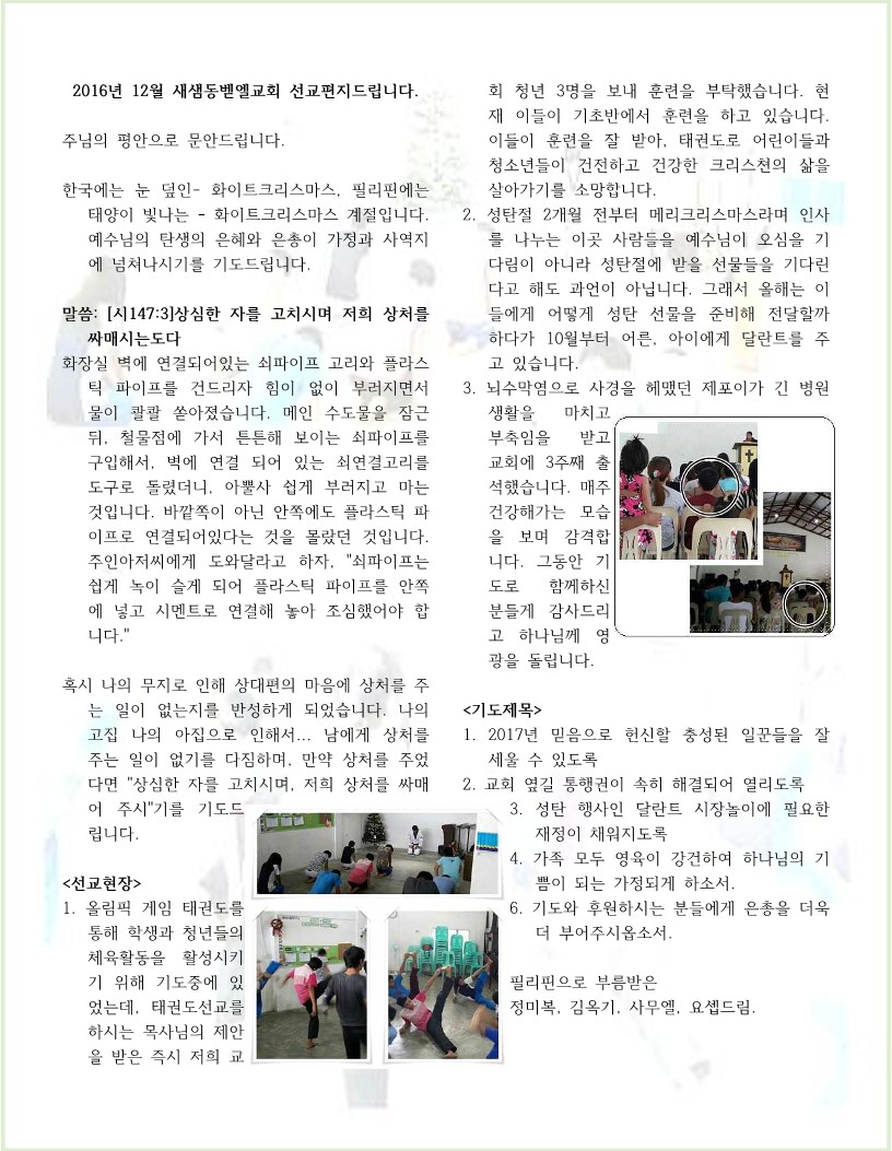 2016년 12월 선교편지